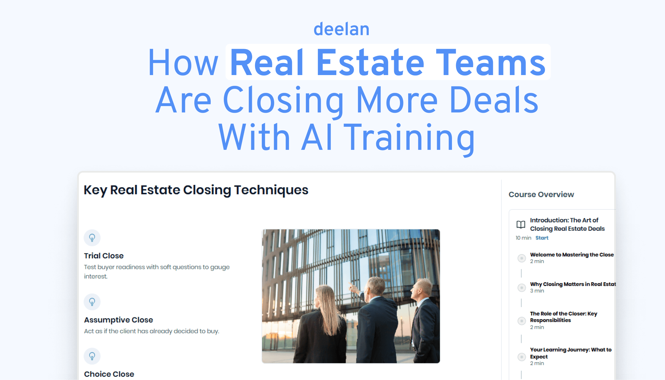 Train agents on negotiations, listings, and leads.