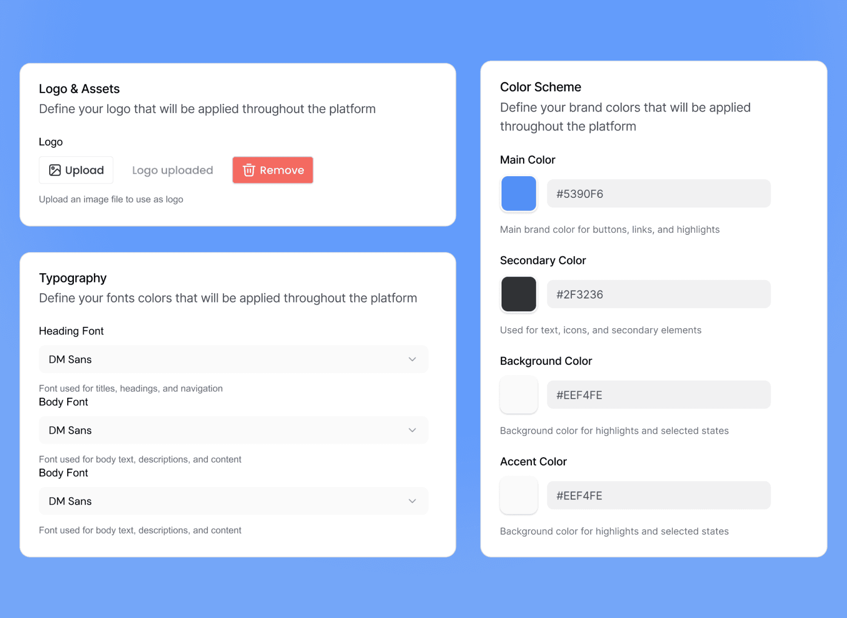Apply your company colors and logo. Deelan disappears, your brand shines.