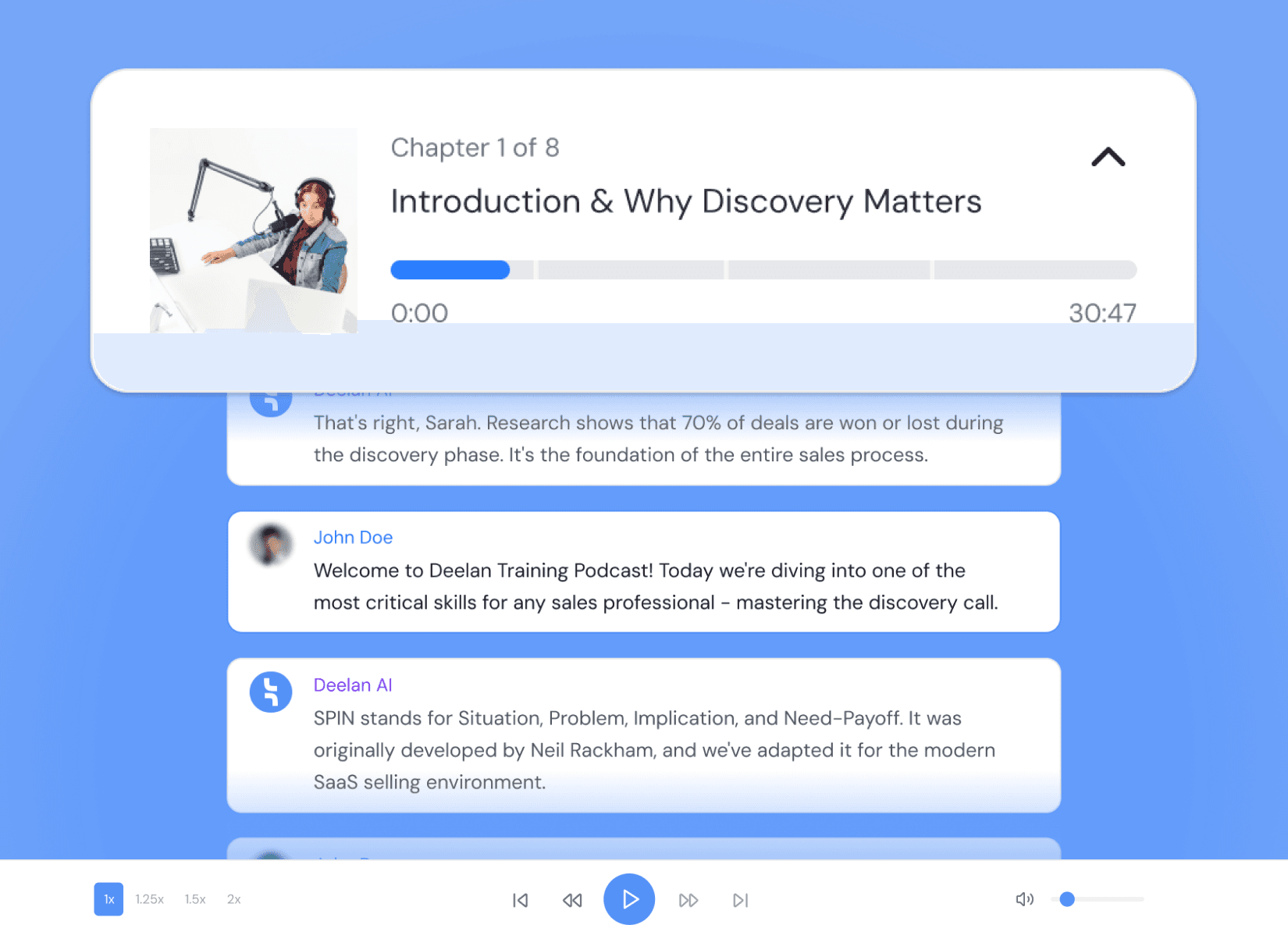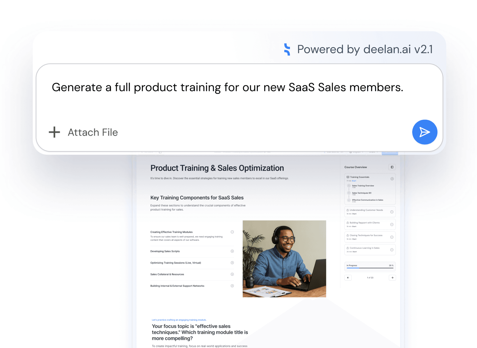 Chat with Deelan from a single prompt to generate a complete training with AI.