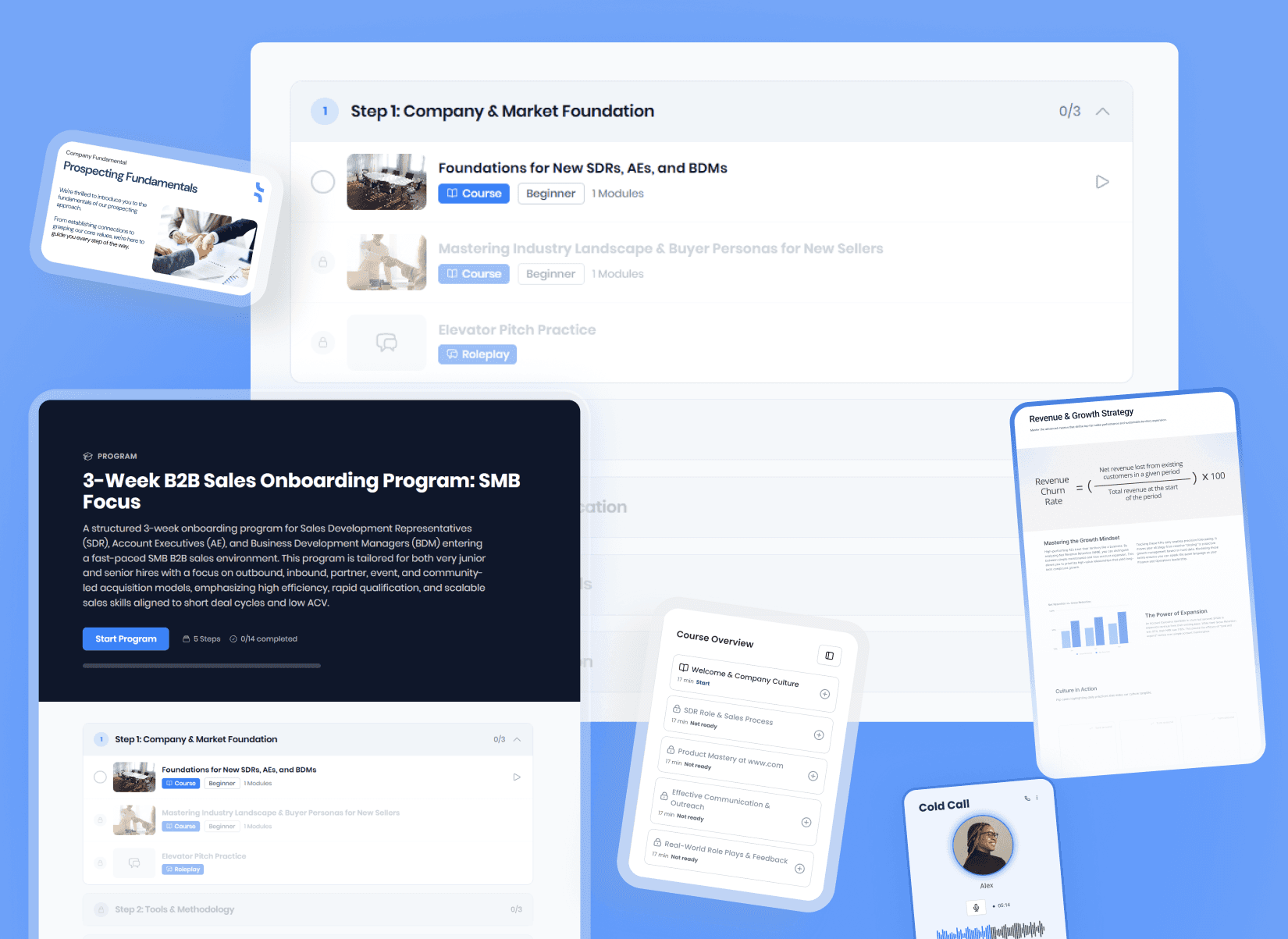 Training is only tested when it's on the field… Use our AI Roleplay builder to simulate cold calls and objection handling.