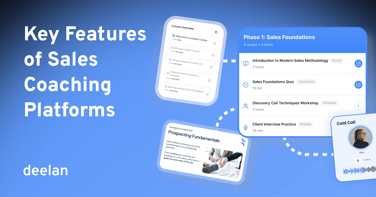 Modern training platforms like Deelan also provide AI roleplays that allow reps to practice cold calls, objections, demos, and negotiations.