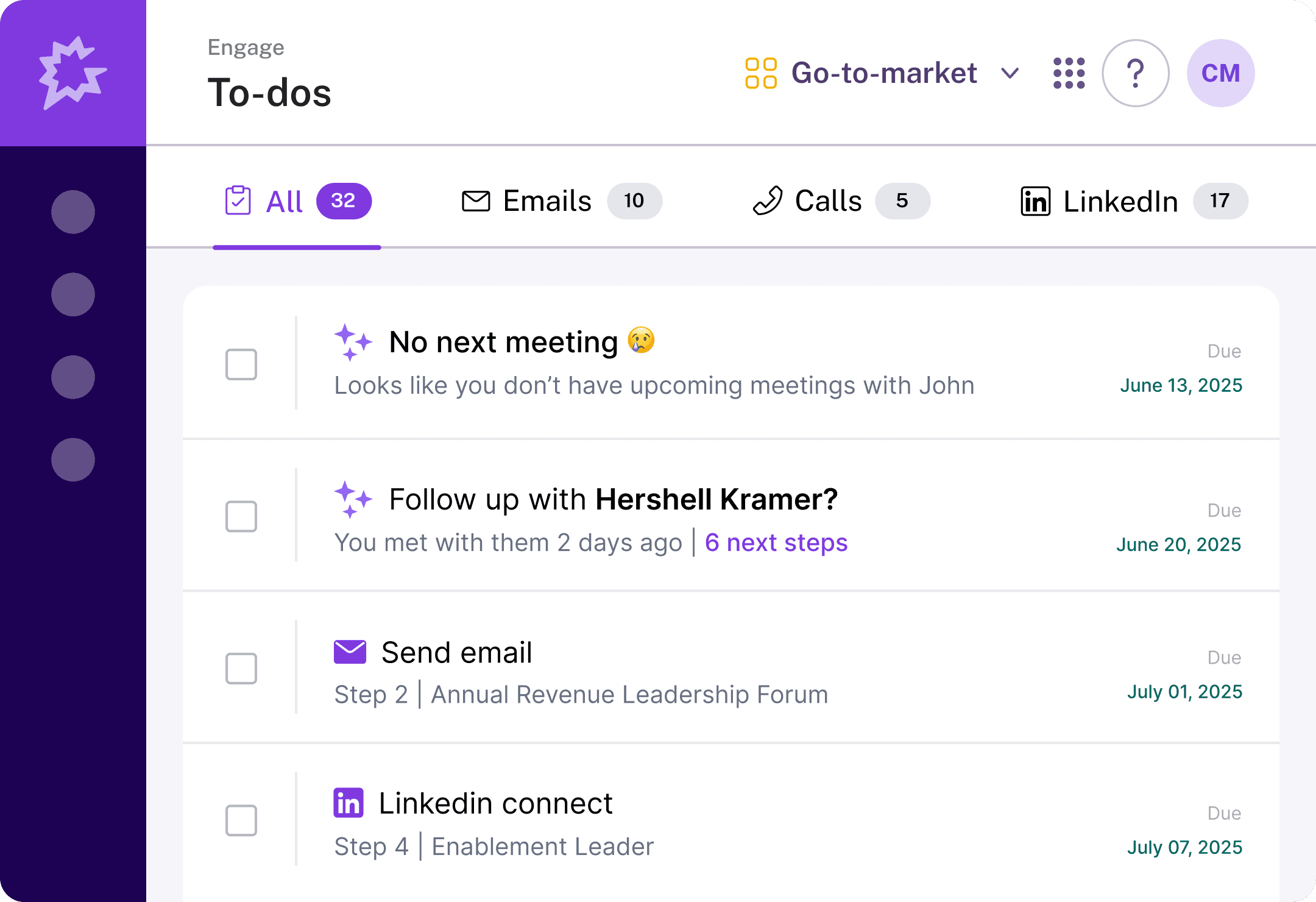 Mindtickle / Highspot: Comprehensive suites for broad enablement and content management.