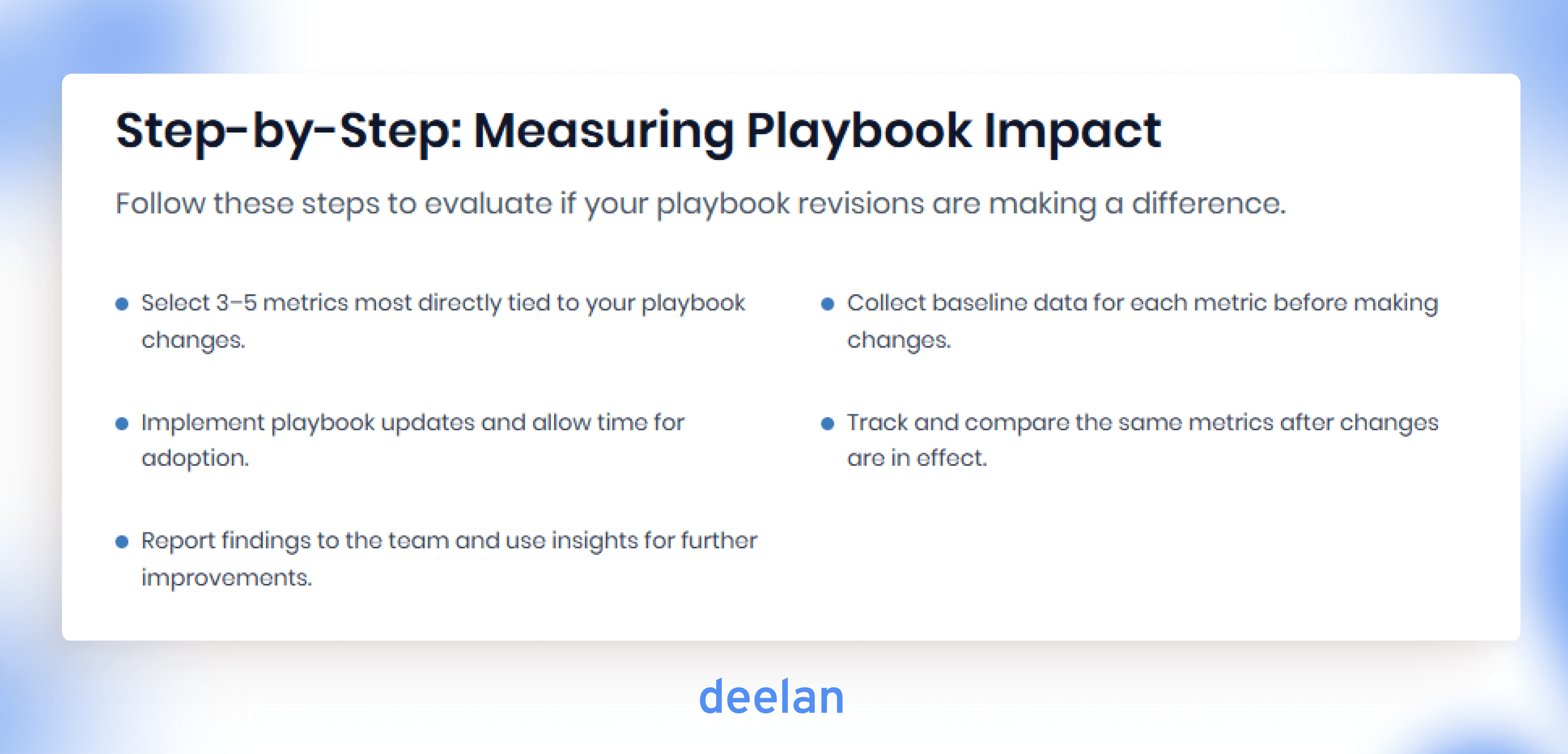 The teams that maintain effective playbooks treat them more like living documents — adding new objection responses when they come up, updating competitive positioning after a loss review, incorporating messaging that worked in recent deals. This doesn't have to be a heavy process. Even a lightweight habit of monthly reviews keeps a playbook from going stale.