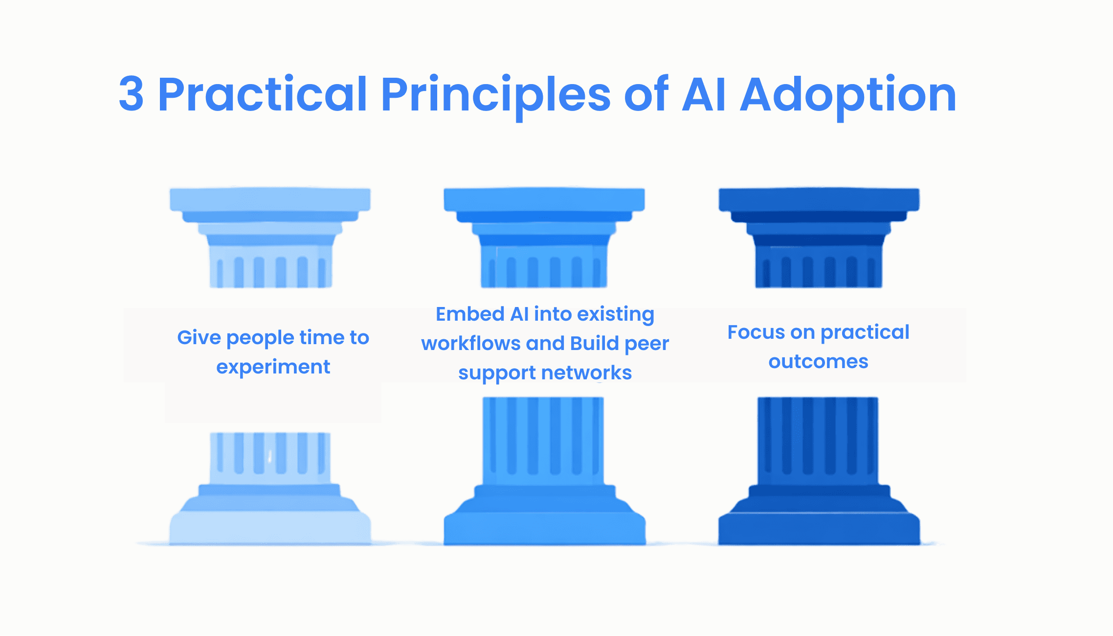 While every organisation is different, several practical principles consistently help AI adoption gain momentum.