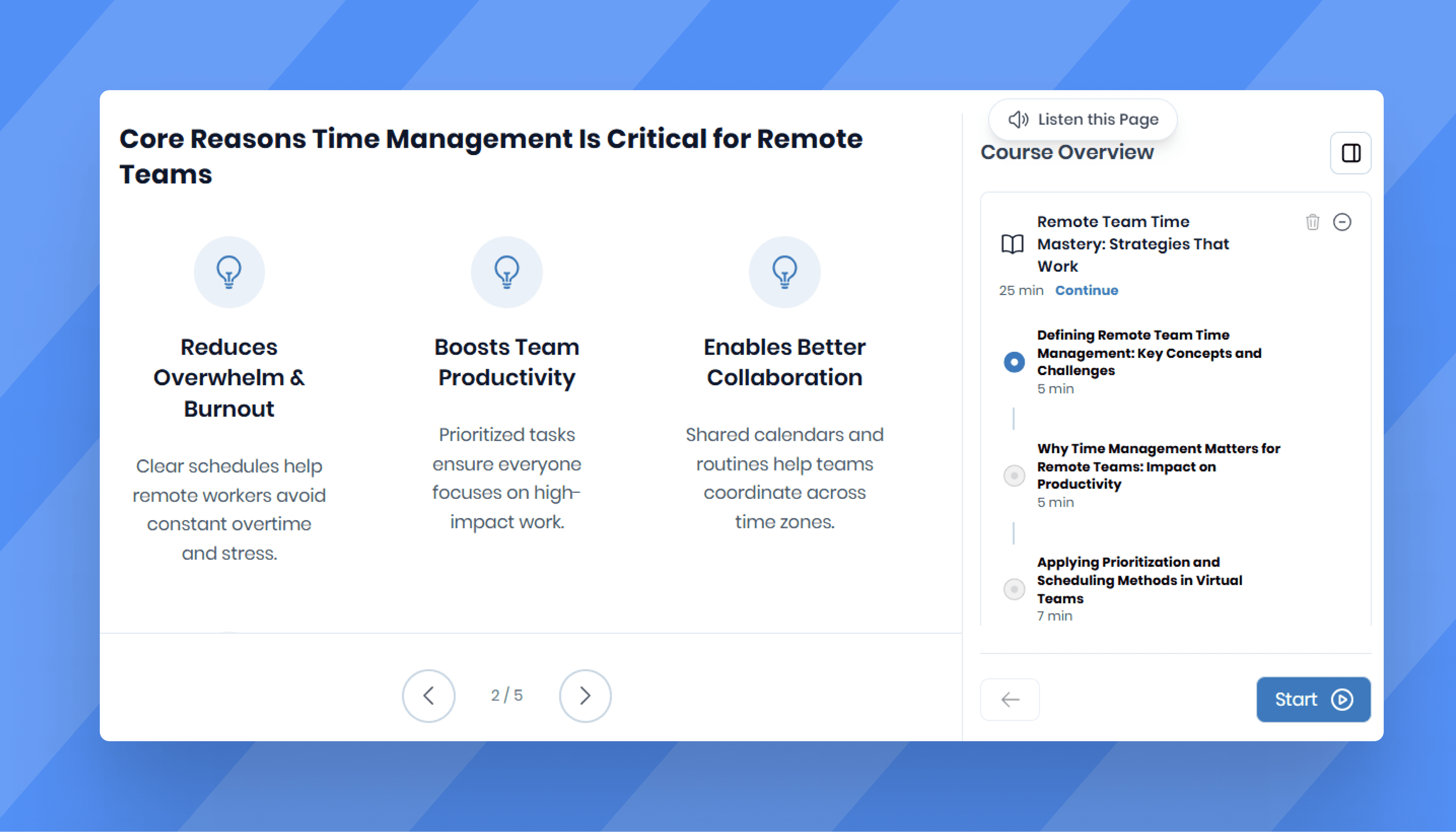 Unlike a traditional course builder that requires manual structuring, an AI course creator can: