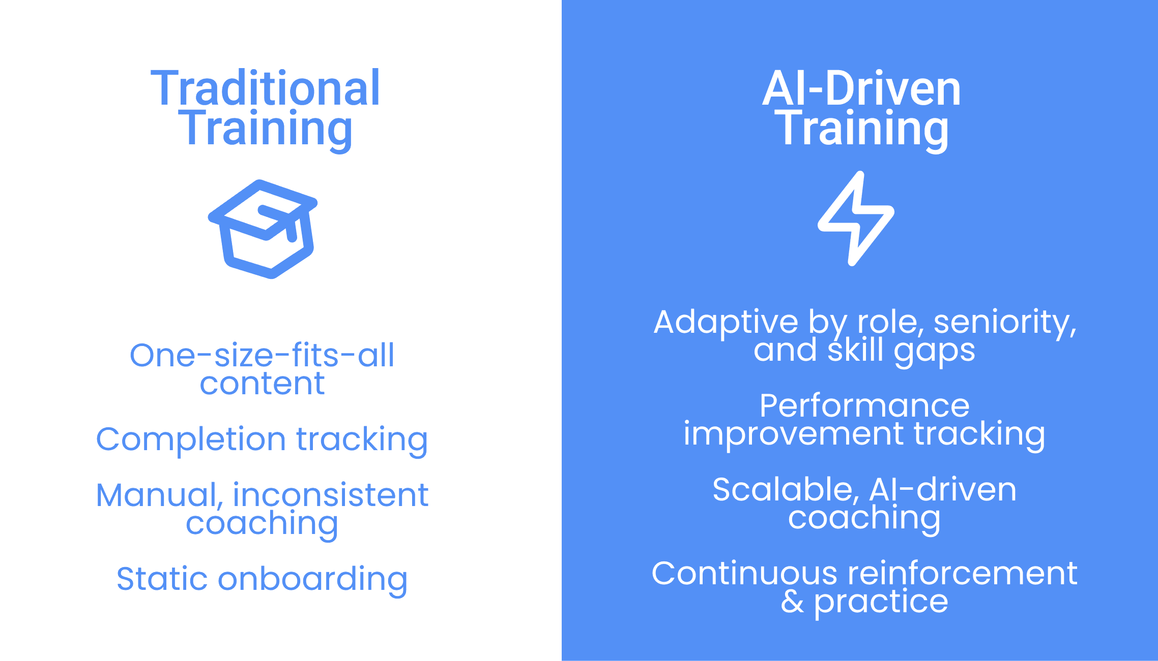 Unlike static onboarding, it personalizes training by role, skill gaps, and real sales behavior - at scale.