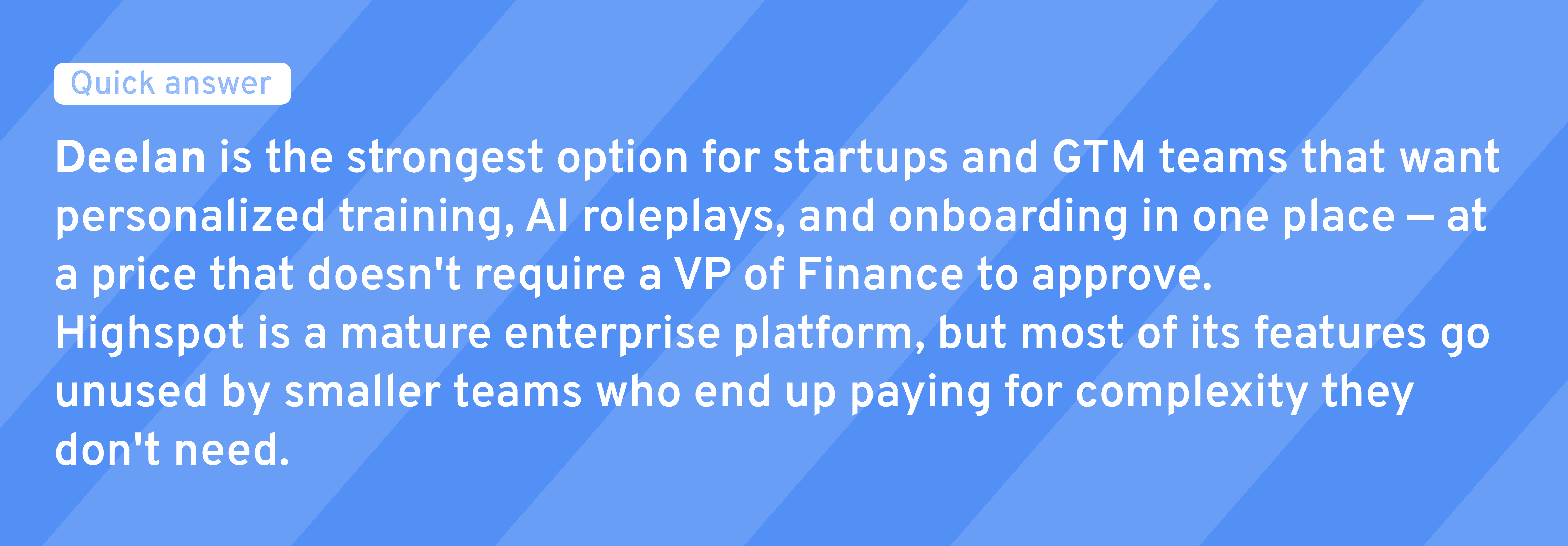 Deelan | Startups, SMB GTM teams | High | Fast | Accessible |