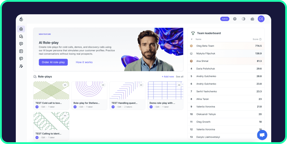 Best for: Enterprise teams wanting avatar-based roleplay.