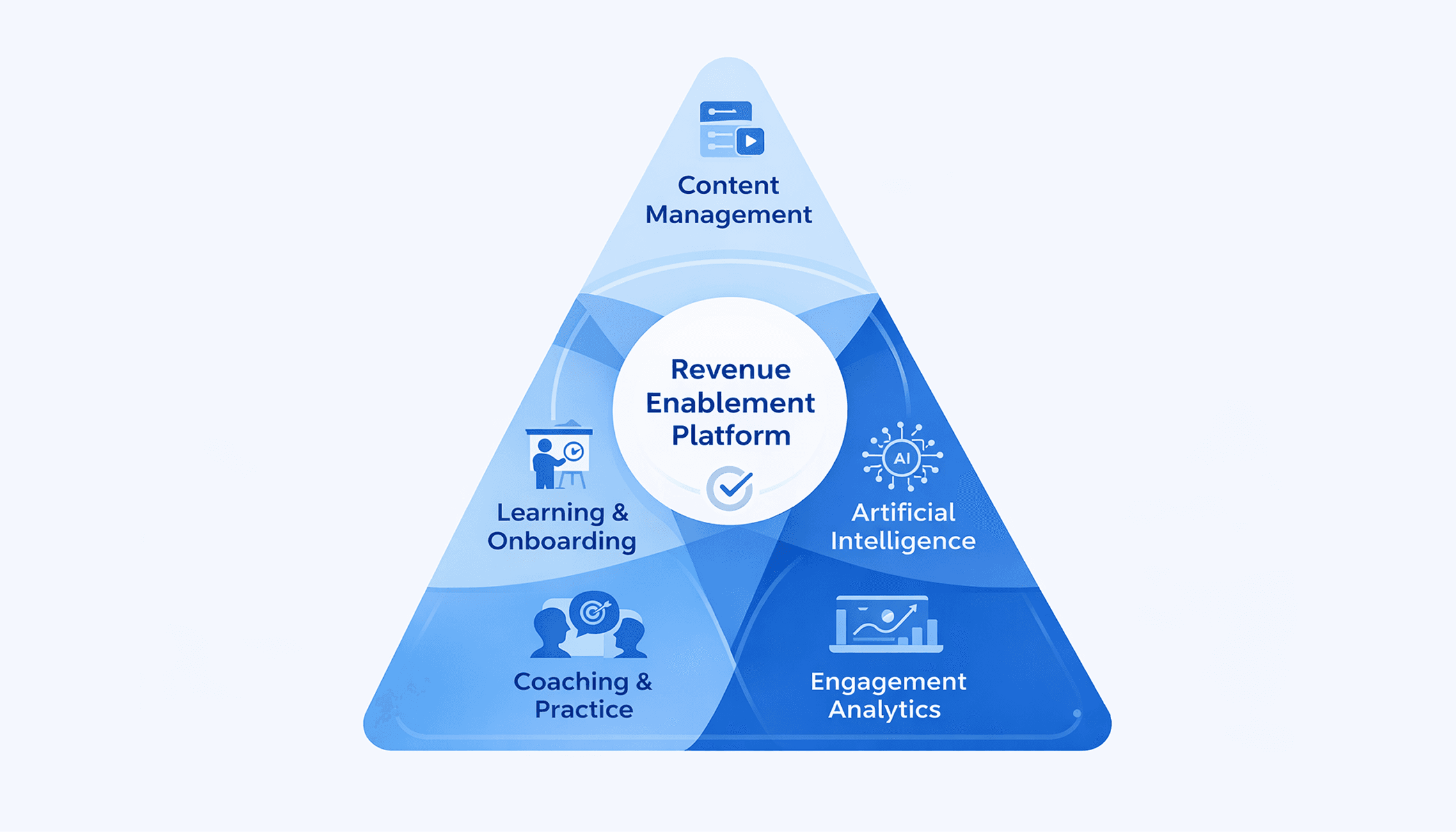 The five core capability areas that define a true revenue enablement platform are content management, learning and onboarding, coaching and practice, engagement analytics, and AI. Platforms that cover all five meaningfully are rare.