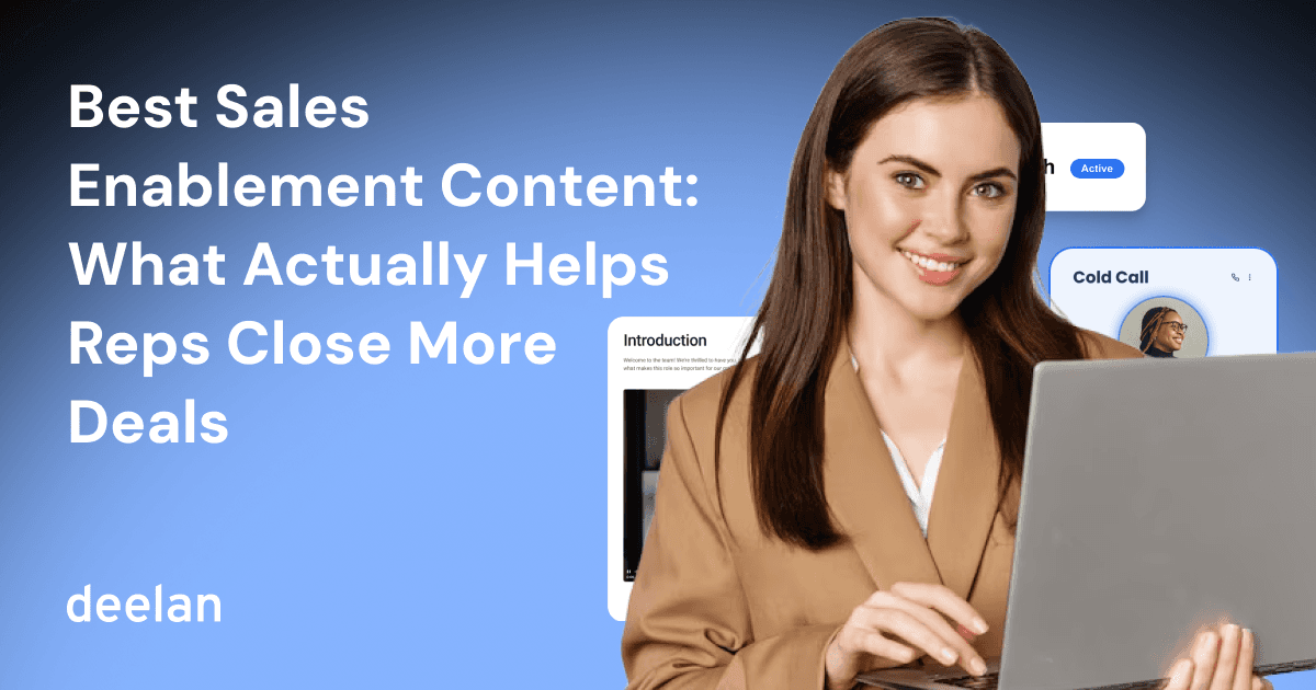 Discover the best sales enablement content types for modern revenue teams. Learn why most sales content fails, what reps actually use, and how interactive training with Deelan improves ramp time, coaching, and win rates.