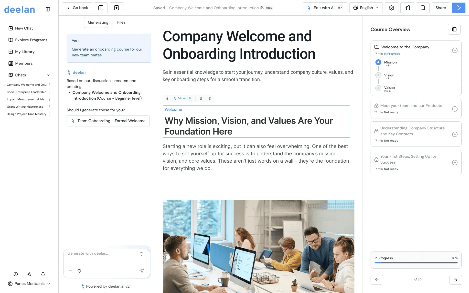 AI-Generated Training in Minutes: Upload a sales playbook, call recording, product deck, or even a URL and Deelan converts it into a structured, interactive training course automatically. Training creation is 80% faster than building manually.