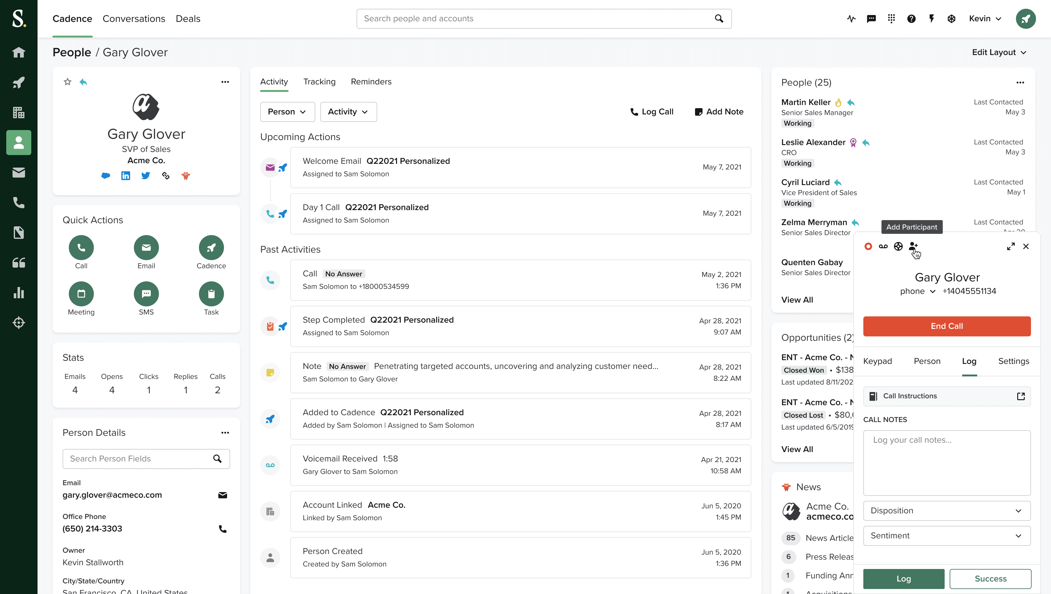 Cadences: multi-channel outreach automation with embedded coaching triggers