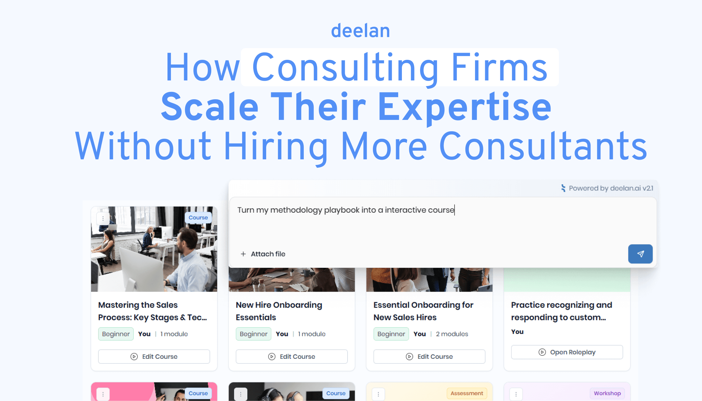 This is why many consulting firms are now exploring AI-powered learning platforms like Deelan to transform their expertise into interactive, scalable training programs.