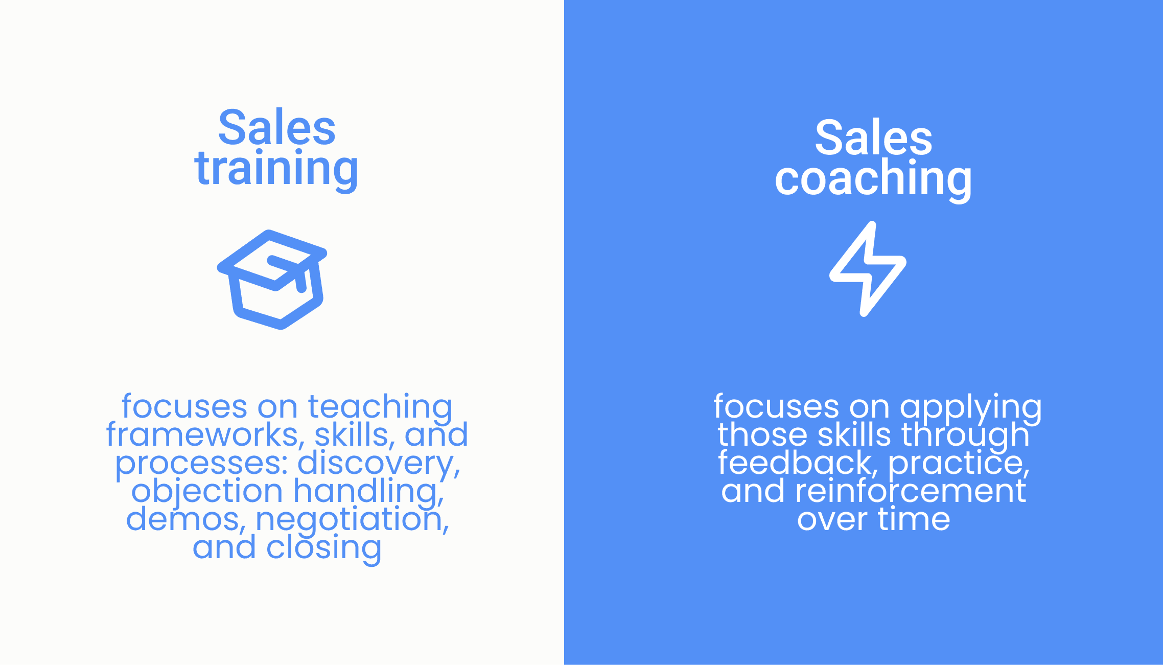 Sales Coaching: This is the "Implementation." It involves ongoing feedback, call reviews, and 1:1 sessions to turn theory into habit. Coaching is typically an ongoing monthly cost or an investment in manager development.
