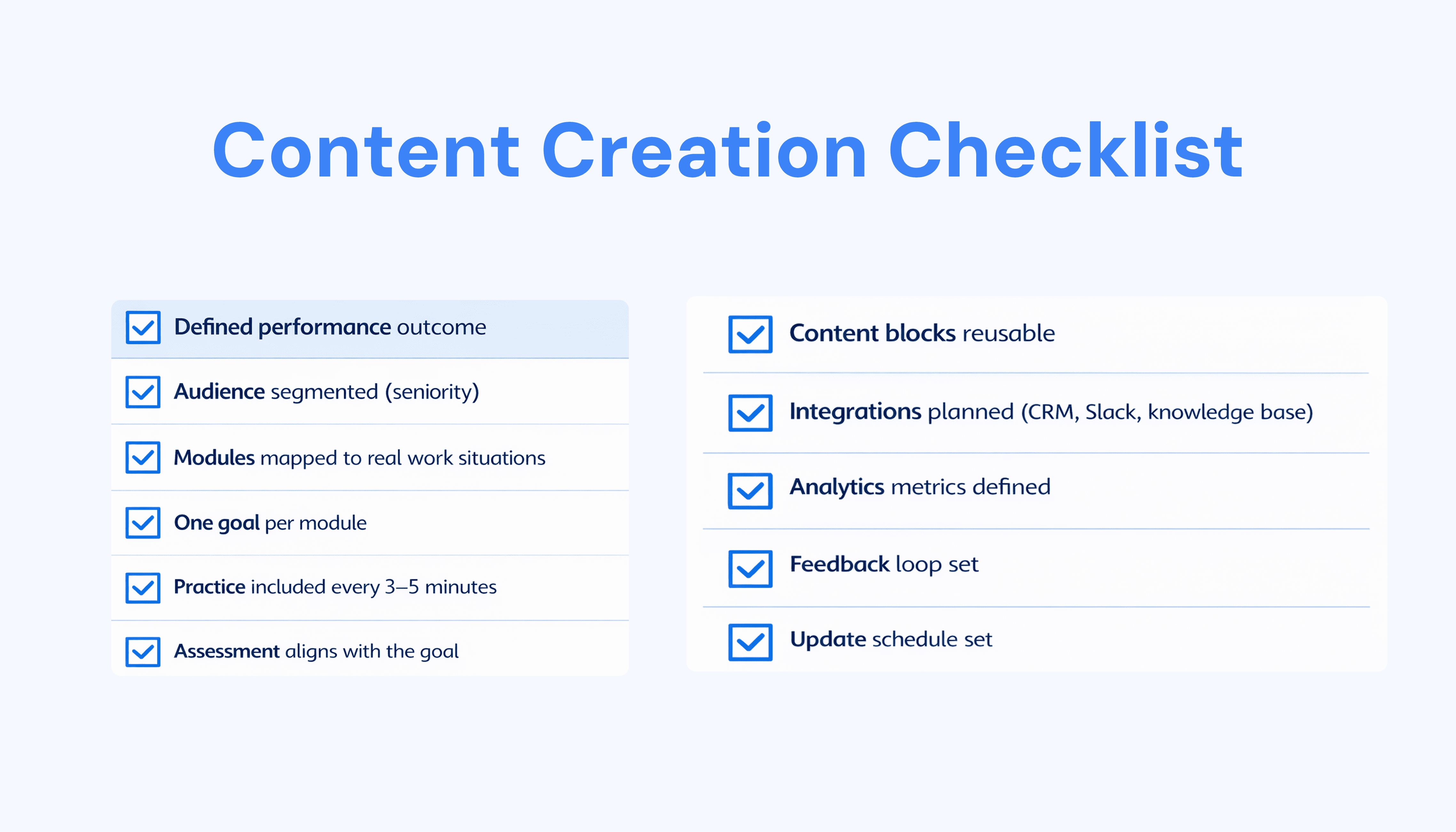 This guide shows you how to run LMS content creation like a system: faster production, better learner engagement, and training that actually improves performance - especially for revenue teams.