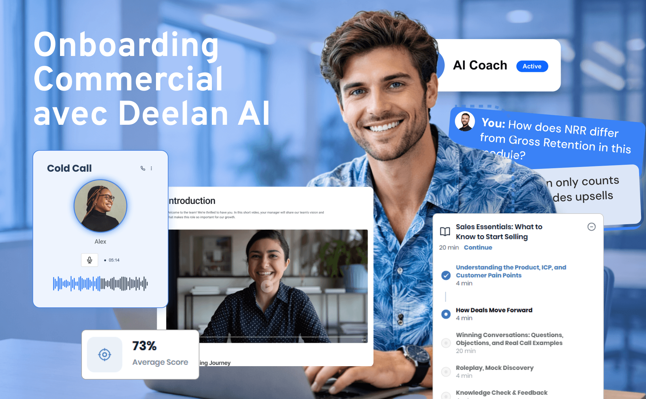 Quels outils utiliser pour structurer l'onboarding commercial ? Au minimum : un CRM bien configuré, un playbook centralisé et des call recordings annotés. Pour scaler, des plateformes de formation adaptatives comme Deelan permettent de générer des parcours complets à partir de vos contenus existants, avec des roleplays IA, des assessments et un suivi de progression en temps réel.