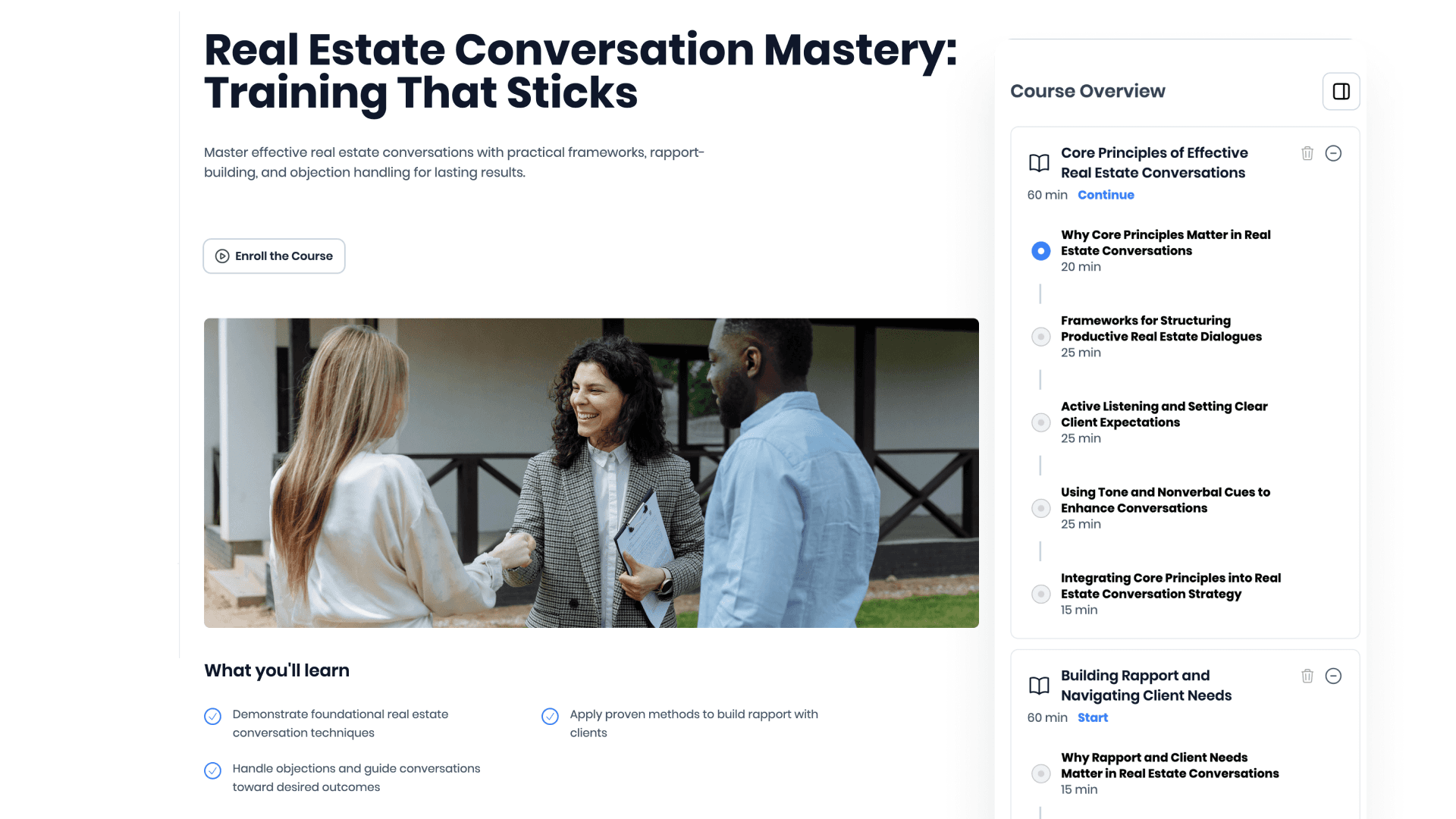 That gap isn’t talent—it’s training. In real estate, your "product" is a conversation. How your agents negotiate, handle objections, and explain value is your brand.