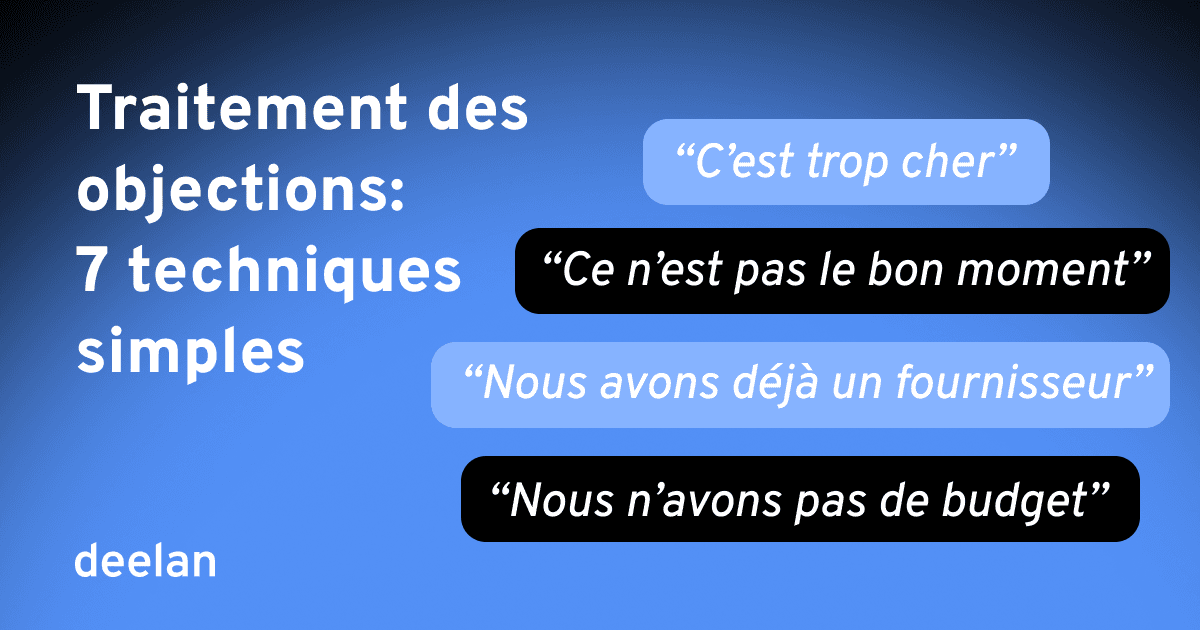 Les objections les plus courantes concernent le prix, le timing, le besoin, la concurrence et l’autorité décisionnelle.